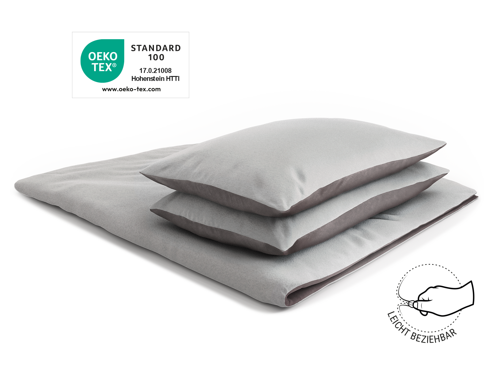 Weich, kuschelig und gleichzeitig robust. Diese Eigenschaften vereint die BODYGUARD® Flanell-Bettwäsche. Der Flanell besteht zu 100 % aus Baumwolle und ist damit atmungsaktiv und pflegeleicht. Die verwendeten Materialien sind schadstoffgeprüft und nach Oeko-Tex® Standard 100 in der strengsten Klasse I für Babyartikel zertifiziert (Prüf-Nr. 17.0.21008 Hohenstein).